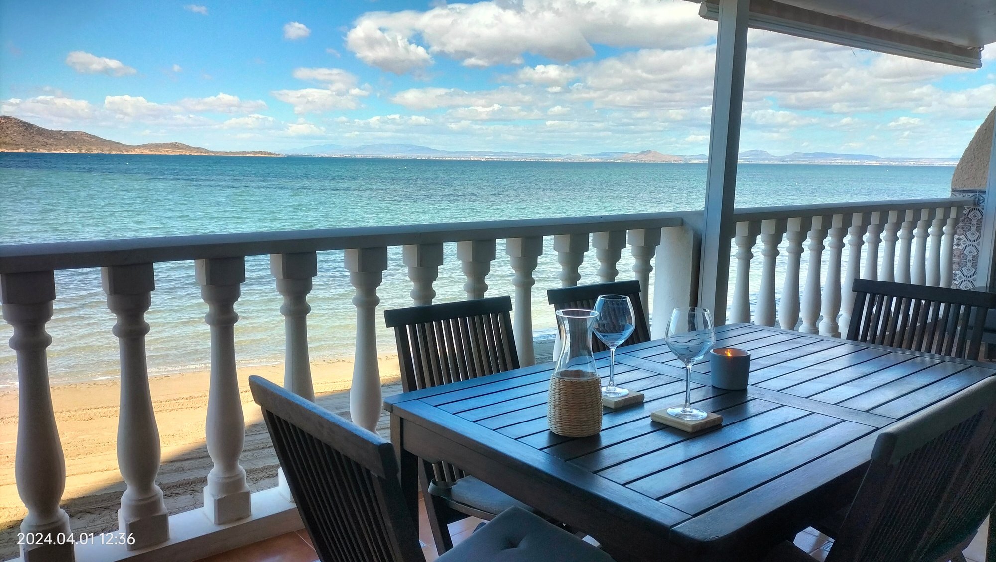 Réveillez-vous face à la magie du Mar Menor. Notre salon, baigné de lumière naturelle, offre un panorama spectaculaire sur les eaux calmes de la lagune. Que ce soit pour un café matinal ou un dîner contemplatif, la mer est votre seul horizon.